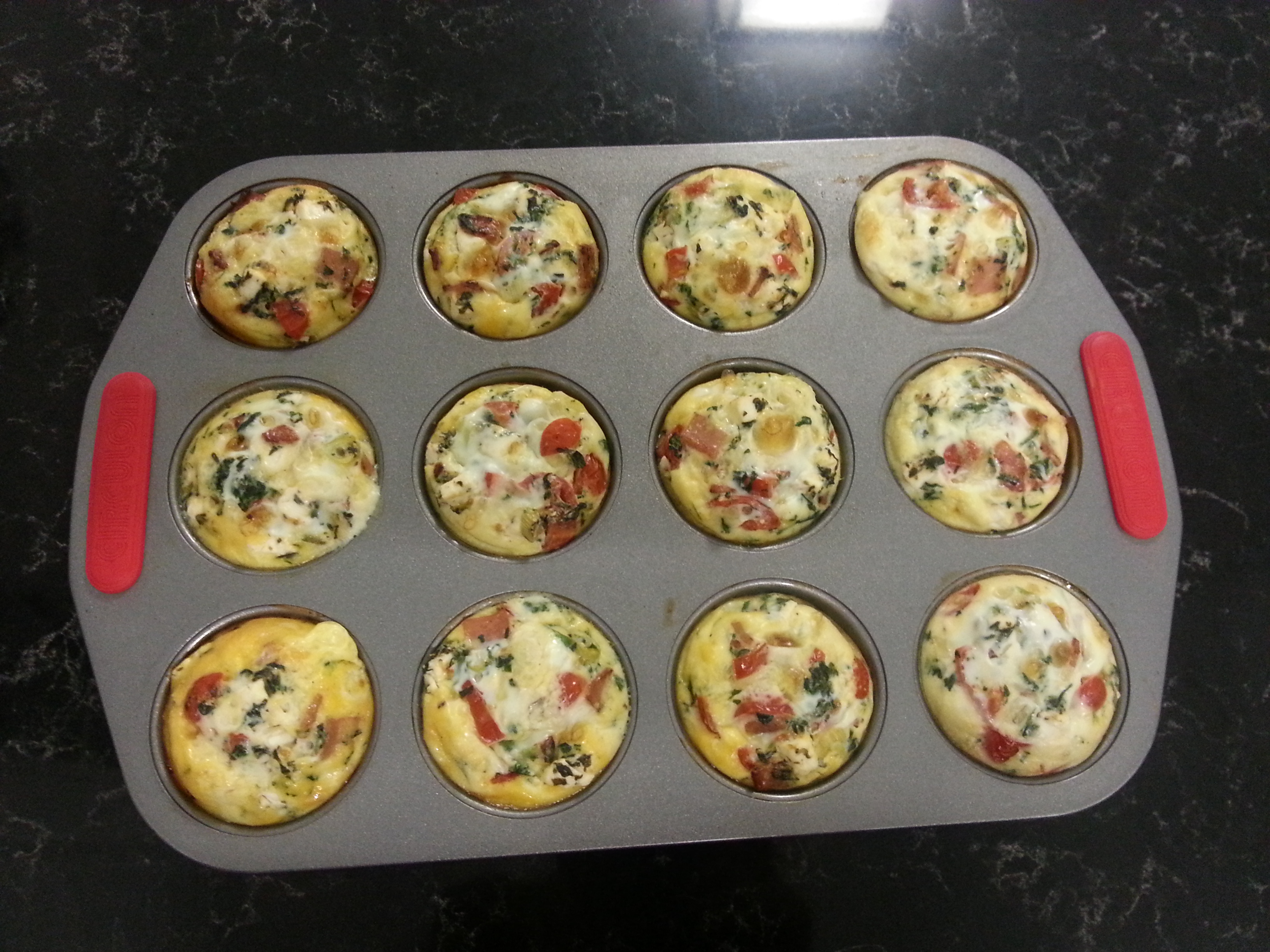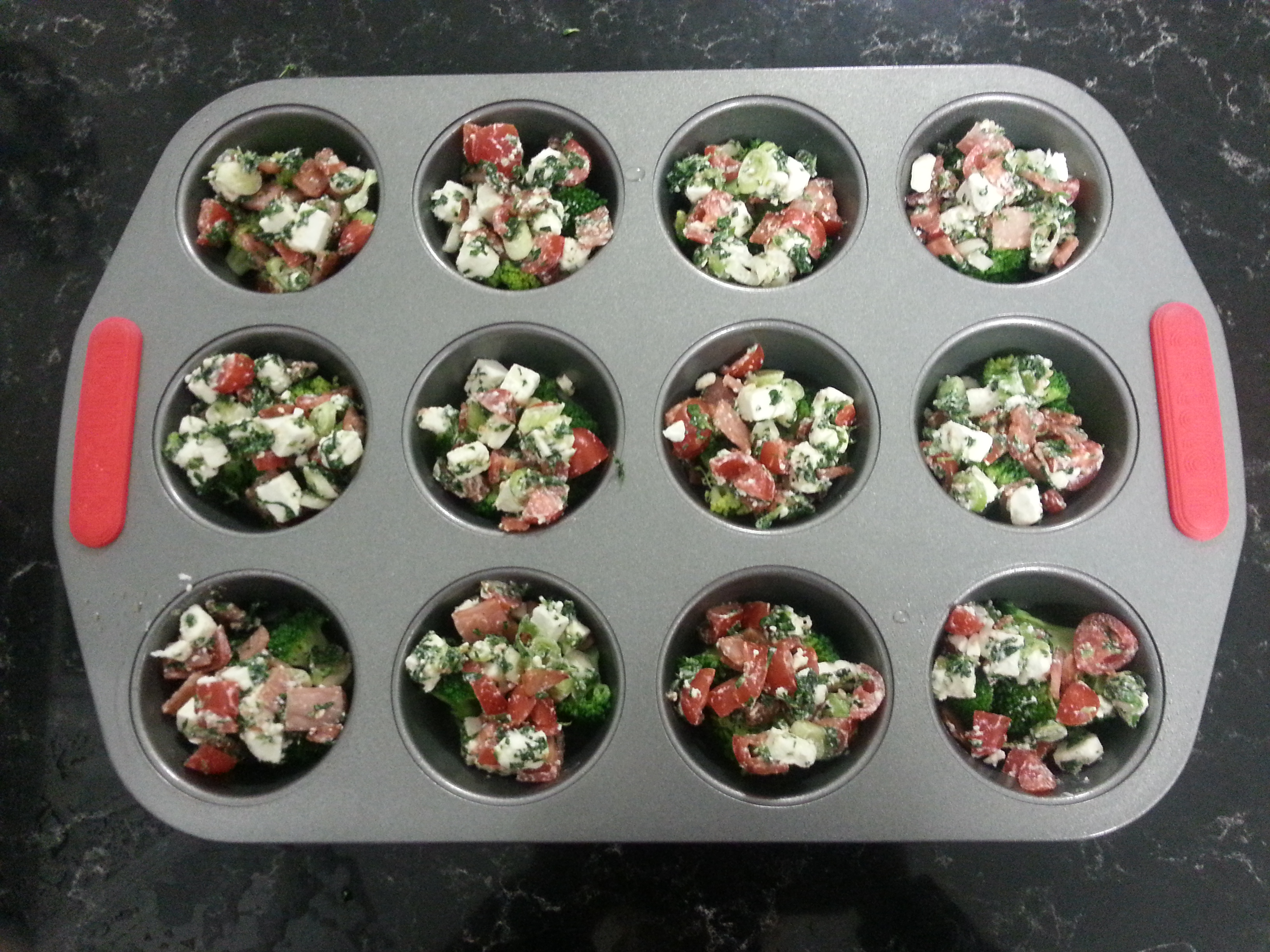 1. Spray a 12 muffin tray with a small amount of spray virgin olive oil