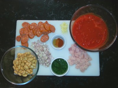 Use four bean mix, kidney beans, adzuki beans, cannellini beans, chickpeas or any other bean/legume you enjoy. Leave out the chorizo and just use the shortcut bacon or ham, or leave out the meat. Use coriander or parsley instead of oregano. Add jalepnos for a kick. Leave out the cayenne pepper if you want it mild. Add mushrooms, capsicums or any other vegetable that you love. Wilt fresh spinach into the mix instead of using the frozen spinach cube. Use brown or red onions or shallots instead of eschallots. Crumble some cheese (eg feta) over the top. Serve on a bed of spinach and rocket instead of rice for dinner. Cook mixture in hollowed out capsicums instead of casuelas for an edible bowl.