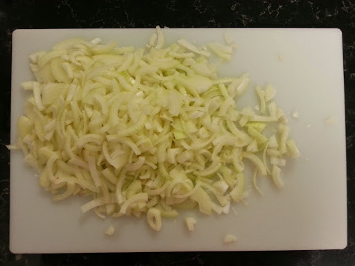 This meal makes for good comfort food. It takes a few pots and pans on the go at once but I think it is worth it. It is a weekend recipe because the onions take a long time to cook. I recommend using a nicer dicer or the like if you have one to make the slicing easier on the old eyes. I realised that I could have done so about 3/4 through chopping and face palmed it. Oh well – next time! Despite the longer cooking time, it is quite simple to make and we had fun cooking something different.
