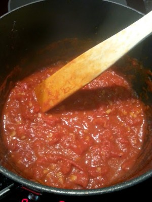 - Make tomato sauce: heat rice bran oil in a small saucepan. add garlic, then spice mix. Cook until fragrant.