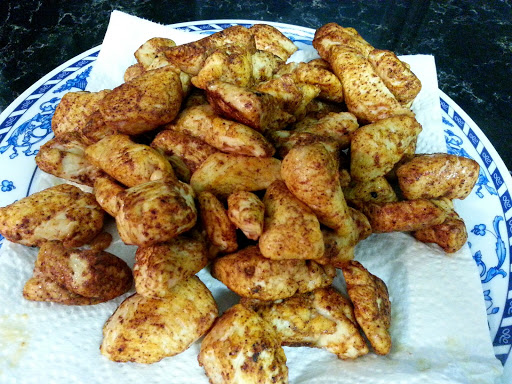In-bag view of chicken - Brown chicken in a frypan on medium heat in 1 tsp rice bran oil. Remove onto a plate with paper towel to absorb any fats.