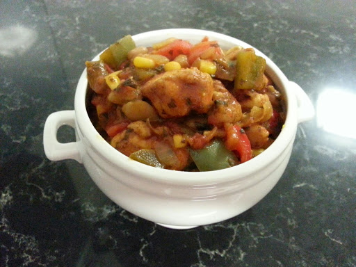 Pure winter comfort food. The chicken was melt-in-your-mouth-tender, and there is a lot of texture and colour. The corn adds a lovely sweetness to it. If you wanted you could certainly add more spice. Once everything is chopped up it is quite easy. We will make this again. It made more than planned, so next time we will make it Sunday night. We go to the gym on Mondays and Tuesdays, so it would work out well as a healthy, easily reheated/nuked three night meal with protein and carbs for post gym restoration.
