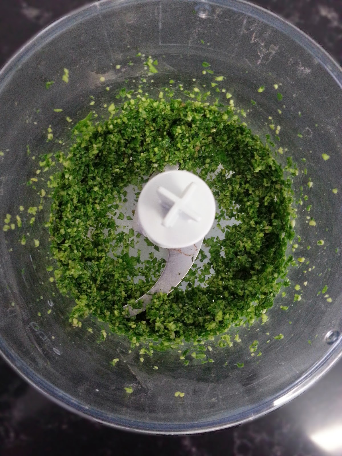 Oh wow. I couldn’t possibly go into all of them. You can do sun dried tomato pesto, coriander pesto, spinach pesto, pretty much any green leaf pesto. The major spin I would probably use next time I make it is to use unsalted cashews rather than pine nuts. Some also use walnuts. Another option is to toast the garlic in its skin prior to peeling, chopping and adding it to the blitzer. This can bring out additional flavours.