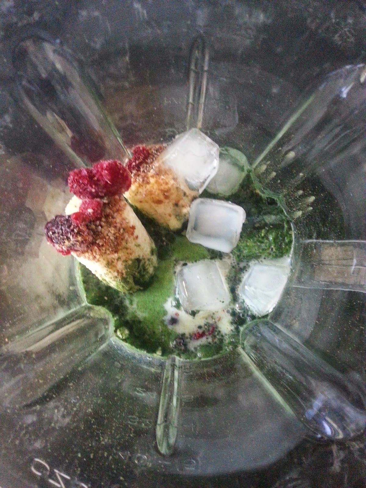 - 1 scoop of Super Greens (spirulina, barley grass, chorella and wheat grass mix)