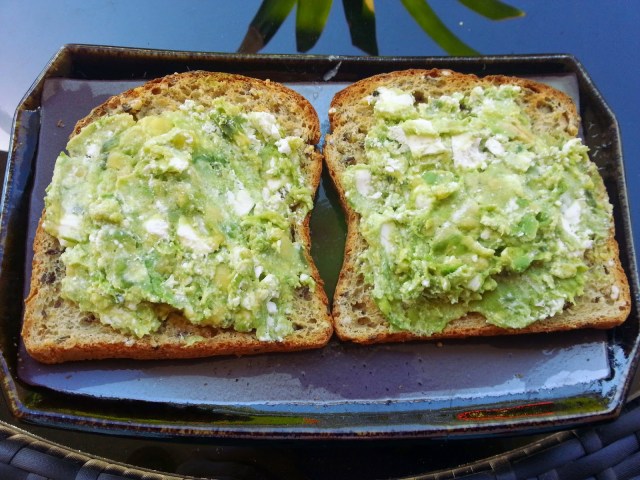 This meal literally took 3 minutes to make. The smashed avocado and feta are ready by the time the toast pops. It could even be made on a weekday without causing hassle, because it would be plated by the time the jug boiled for coffee. A bit of ham on top wouldn’t add any extra time. Adding a poached egg on top would mean that you’d likely be satisfied with just one slice of toast. It would add a couple of extra minutes, but if you started the egg first then did all the other steps while the egg cooked then I think it would still be pretty quick overall. I’m considering using this as an easier alternative to guacamole in a breakfast tortilla in the next few weeks. If I do, then I’ll post it.