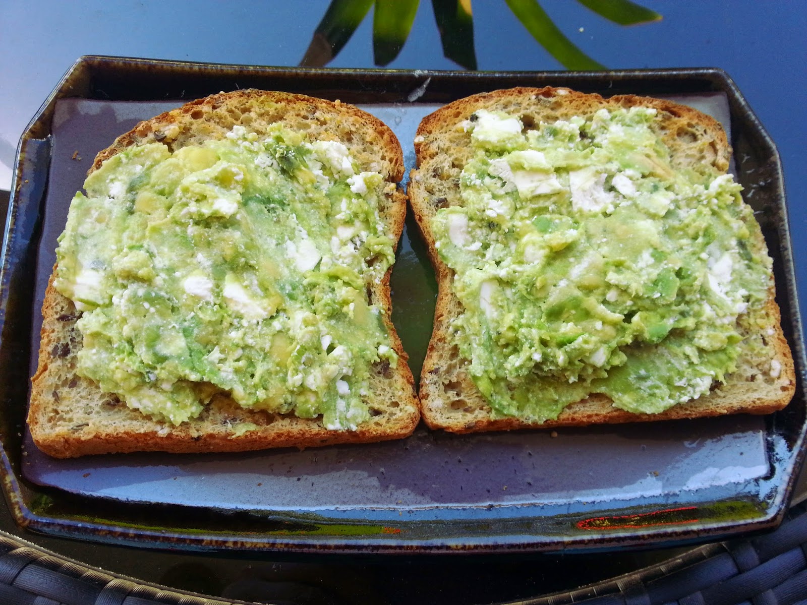 - Scoop the flesh of an avocado into a bowl, add feta, lemon juice, salt and pepper to taste.