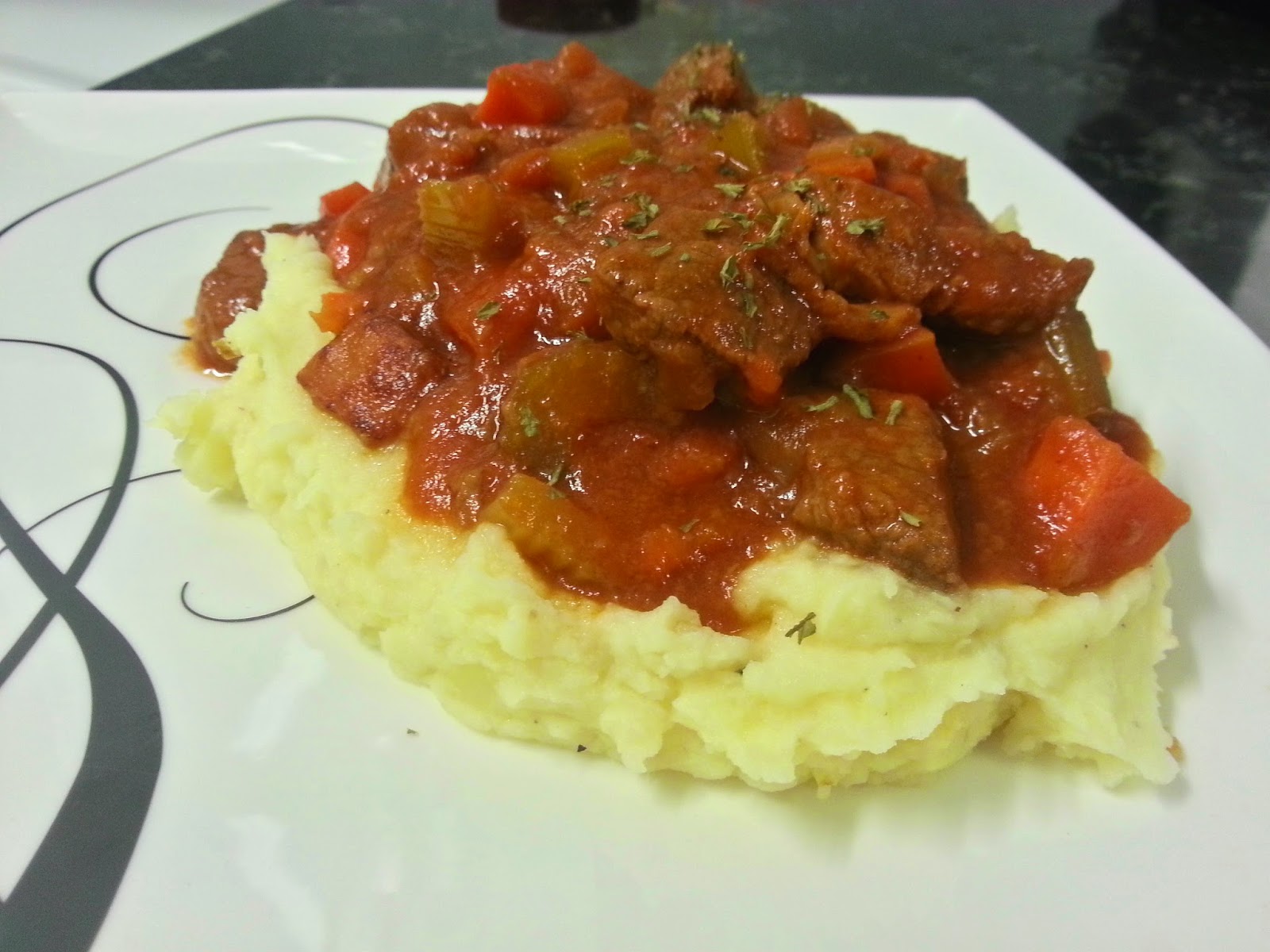 | Garlic Mash as a bed for beef casserole |