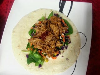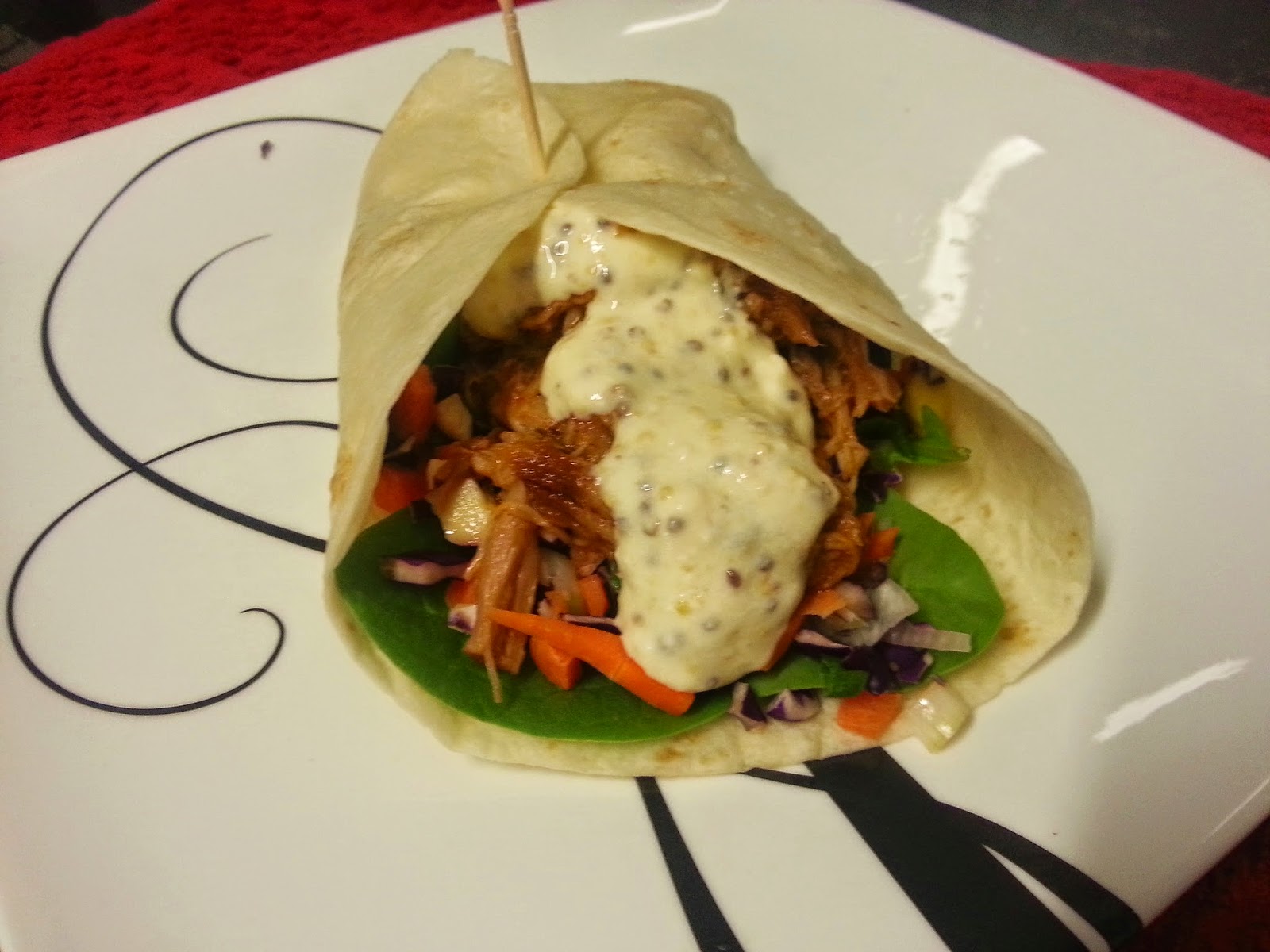 After making the pulled pork pizza two nights in a row because it was so good, we decided to use what we thought would be the remainder of the pulled pork in wraps. Turns out there is more left which we have freezed for later use in a pasta. These wraps turned out to be delicious and worthy of sharing, hence they are here as well as an alternative way to use these ingredients. This is an easy and healthy way to use up leftovers. With no further ado….