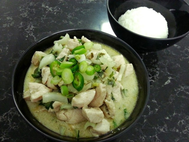 Who doesn’t love it? Green curry was my introduction to the beauty and balance that is Thai food. Its creamy, spicy perfection on a plate. For years it was my go to order at Thai restaurants but over time I’ve diversified. Tonight I wanted to make a quick and simple version for a bit of comfort given that my back pain has been playing up this week (silly thing – I’m way too young for back problems – right?). There was very little prep and the outcome was great. I was aiming for a purely green and white theme visually. Texturally I wanted a mix of soft, semi soft and crunchy. I think that this recipe ticked all the boxes.