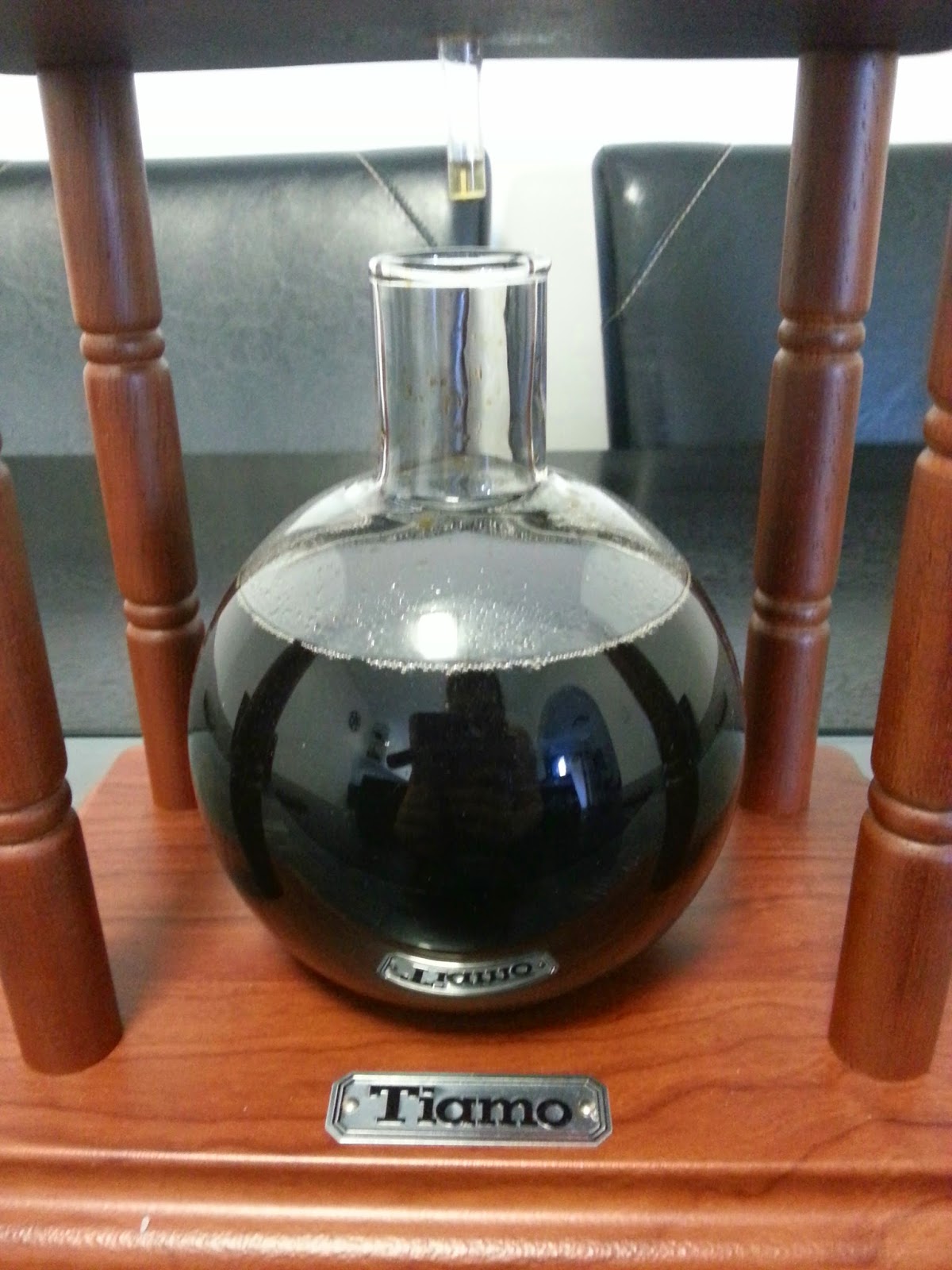 So cute and so science-labeyBy morning or 6-8 hours after you brew, the bottom flask should be 3/4 full of deliciousness.