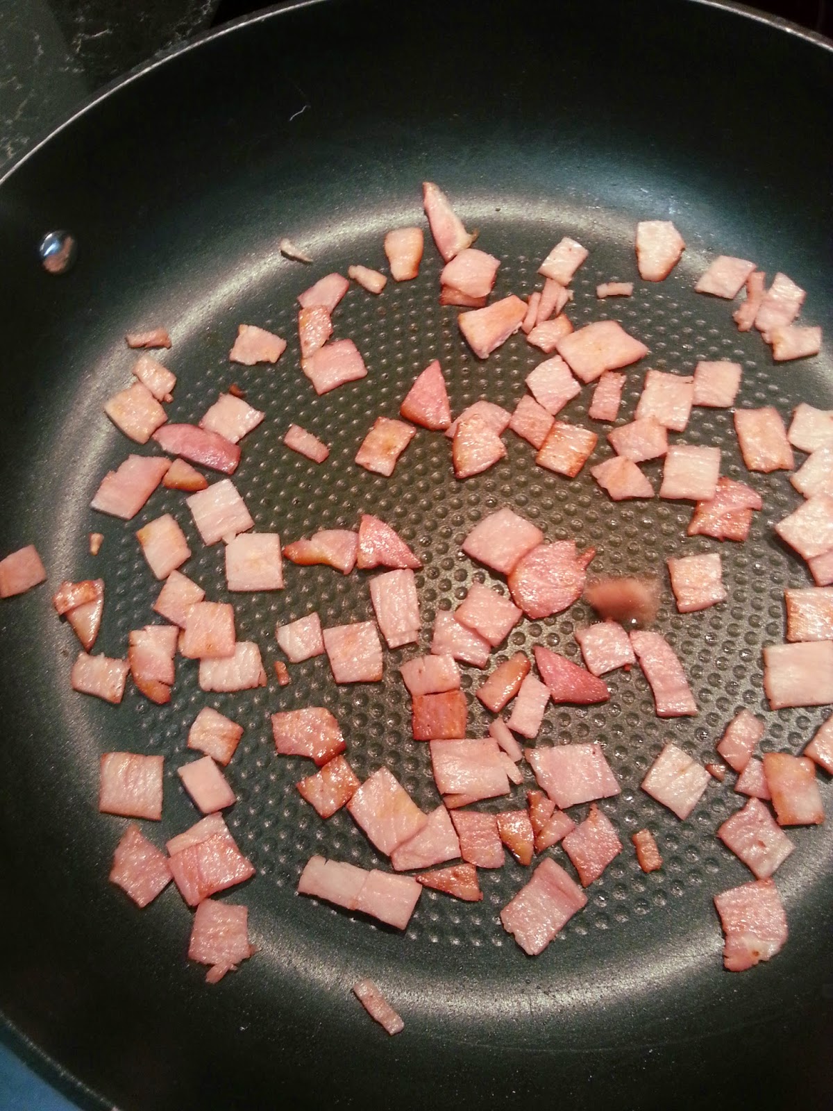 - 5 slices shortcut bacon, all fat removed, diced