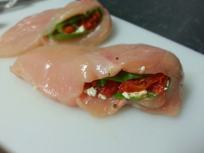 - 2 small portions marinated persian feta, crumbled. (hard to give an amount, it depends on the size of your chicken breast)