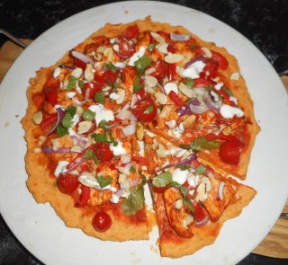 I’ve discovered that tandoori chicken and pizza are a match made in heaven. I’ve made this a few times now and it is always yum. It is a blend of my two favourite foods – curry and pizza…drools.