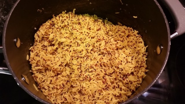 There is this cute little cafe near my work which serves healthy and yummy meals put together by a nutritionist. Their healthy curries are always served on a bed of quinoa and rice, with some veggies stirred in. I’ve taken a liking to it. Adding quinoa to your rice adds fibre and protein, both of which I am always keen to increase in my diet. I’ll be making this regularly, and thought it would be convenient to have a post demonstrating how to easily cook them in one pot using the absorption method. Happy cooking!